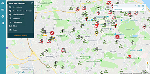 Elgin is now able to offer operational users in Scotland a unique view of live congestion related to active roadworks via our Real-Time Map, providing a unique dashboard of works causing unusually severe congestion. Another service which is now available to Scottish road authorities is the ability to influence driver behaviour via real-time management of road closure information and syndication into sat-nav services such as Google Maps using Traffic Management App.