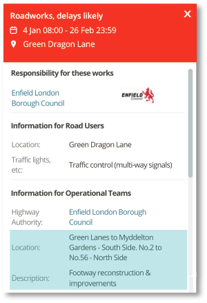Public users stand to lose two pieces of data: the detailed descriptions of roadworks, and the detailed descriptions of their locations. There’s an example of these below.