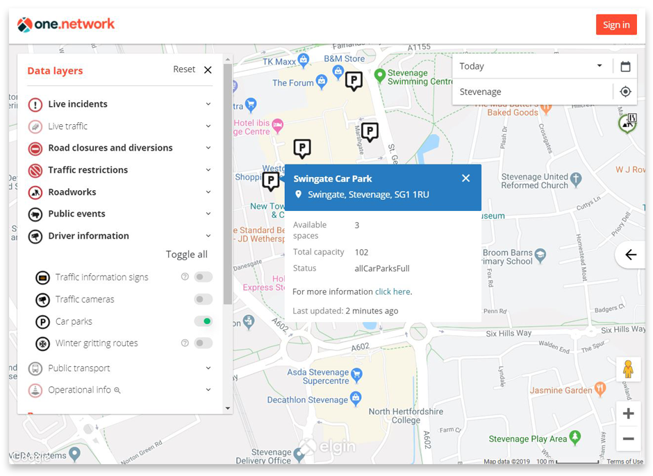 one.network Map is the foundation of our platform and we offer a range of configuration options to optimise it for use by our customers. Live feeds such as traffic cameras and real-time parking availability, public transport and over 30 additional data layers can be added to the map.