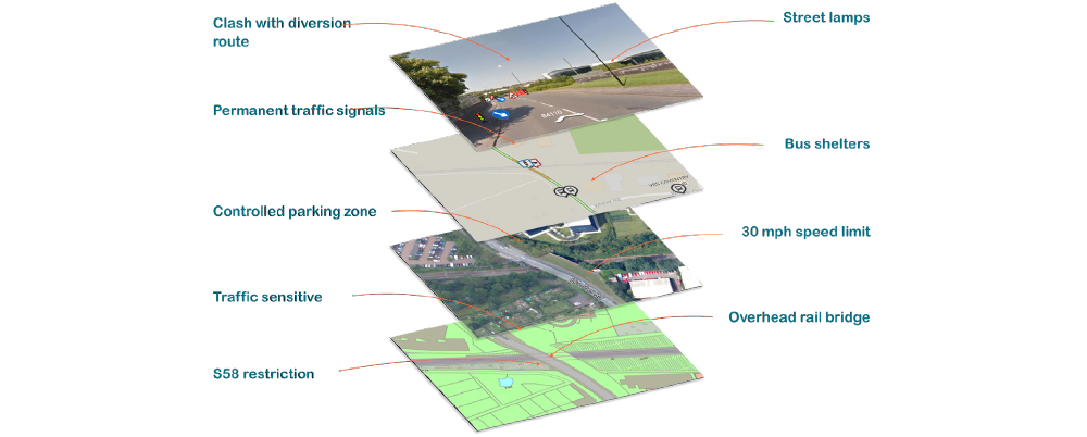 The below map data layers can be integrated to support use cases as diverse as traffic control centre operations, event management and roadworks planning.