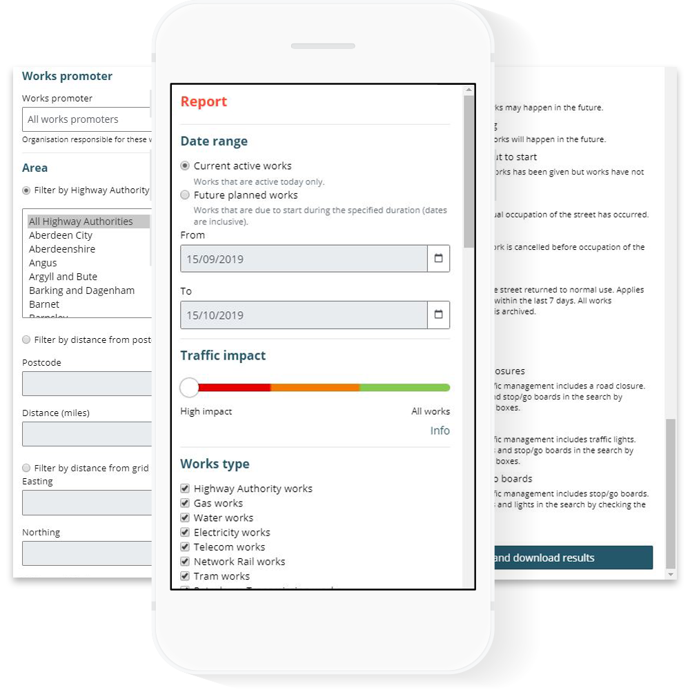 With Reports module users can download planned roadworks, public events and traffic management interventions from over 300 public authorities and a similar number of utility companies and public events organisers.