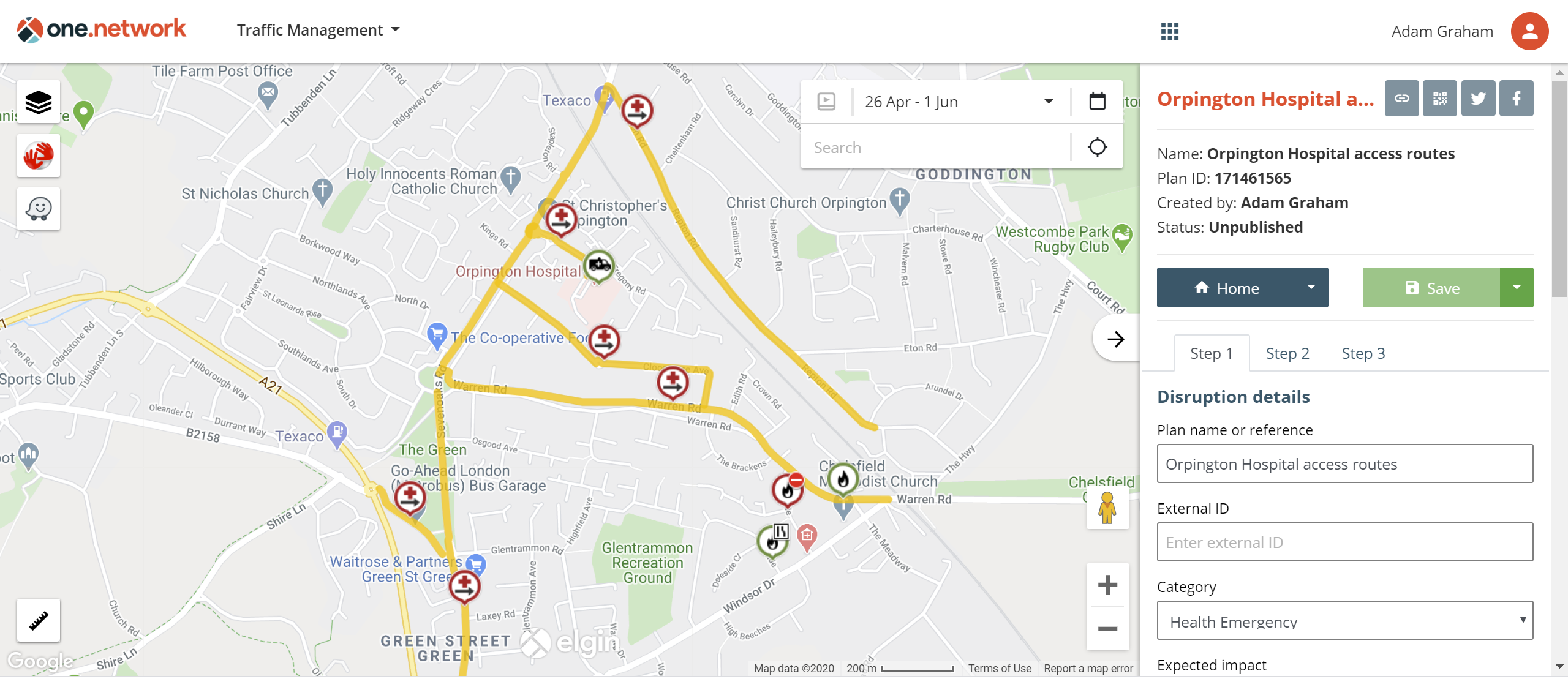 Coronavirus may have reduced the traffic volumes on our roads, but effective network coordination is as critical as ever. Keeping emergency access routes clear ensures emergency vehicles can get patients to hospital on time, critical supplies of PPE can be delivered without delay and key workers can get to and from work without any additional stress.To help you coordinate effectively we are adding a new category in your Traffic Management module tonight called ‘Health Emergency’ where you can associate new Emergency Access routes.